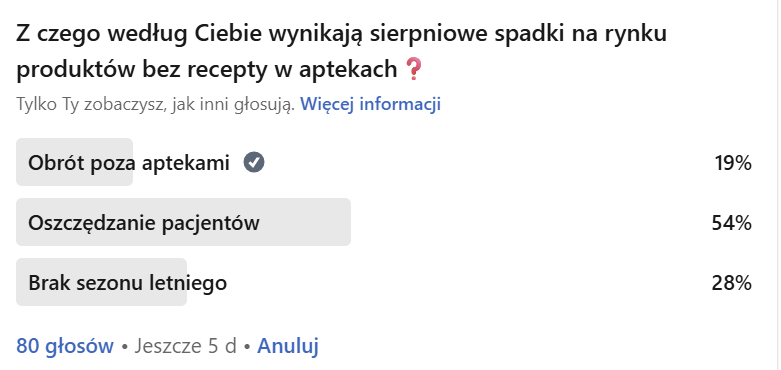 Z czego według Ciebie wynikają sierpniowe spadki na rynku produktów bez recepty w aptekach❓