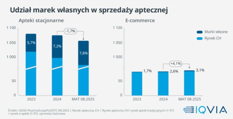 Wpadła mi w rękę analiza IQVIA, gdzie na tapet wzięto rozwój marek własnych w dwóch kanałach stacjonarnym i e-commerce.
