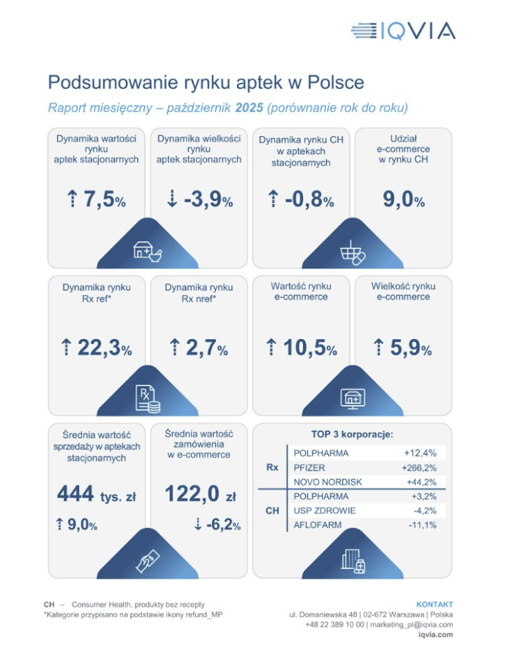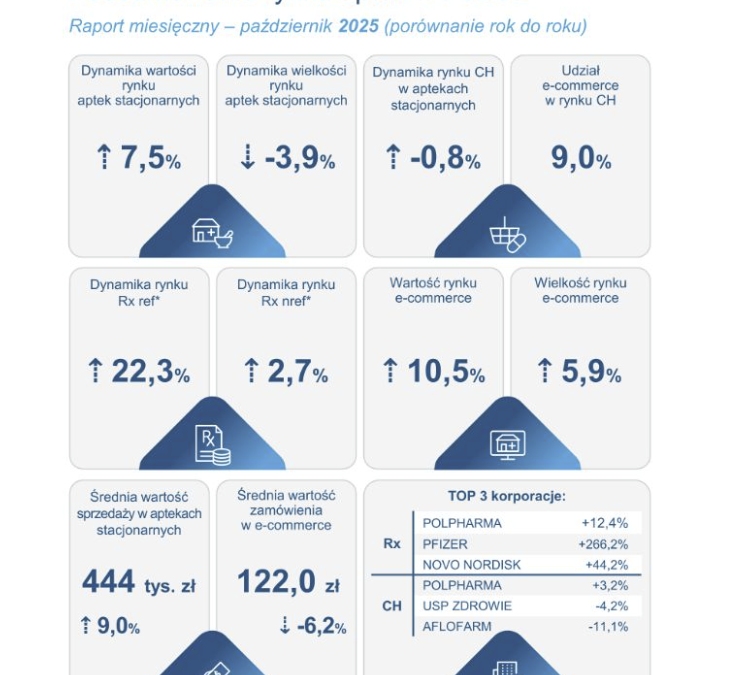 Dane IQVIA 10.2025 potwierdzające, że rynek e-commerce ma się lepiej niż aptek stacjonarnych.