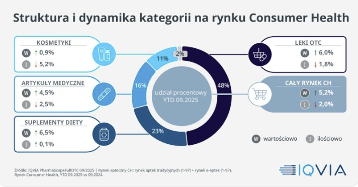…jak ciężko jest rozwijać ilościowo sprzedaż. Od lat rynek apteczny rośnie głównie wartością co oznacza z drugiej strony dojrzałość rynku, albo to, że nowe marki suplementów wcale nie mają potrzeby rozwoju sprzedaży na tym rynku, ale świetnie adresują sprzedaż w kanałach on line poza aptekami- Drogerie, strony producentów, marketplace etc. Wiadomo OTC to już tylko apteki i tu faktycznie mamy constans.